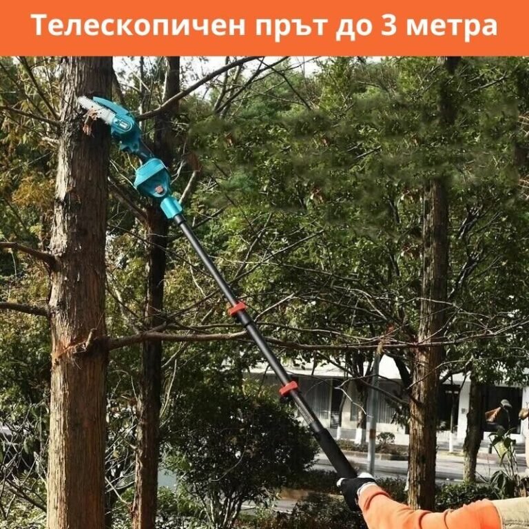 Благодарение на регулируемото рамо от 1,8 до 3 метра можете да нагласите дължината според вашите нужди, достигайки високи клони или отдалечени зони с пълна безопасност, без нужда от стълби или допълнително оборудване. Идеално за поддръжка на градината, подрязване на дървета или почистване на живи плетове, този трион осигурява несравним контрол и намалява умората.